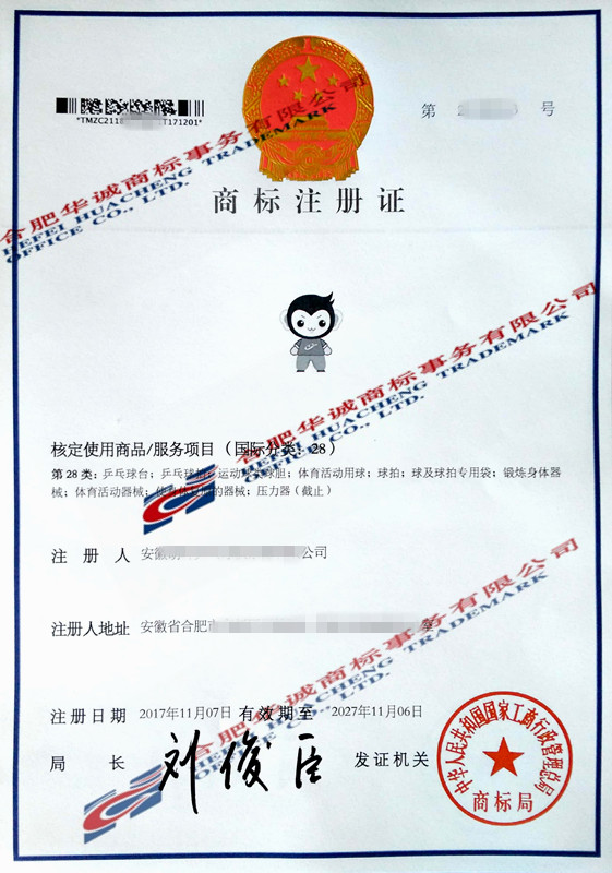 您委托我所代理商标注册申请,名称为“图形” 28、35类商标注册证已下达。