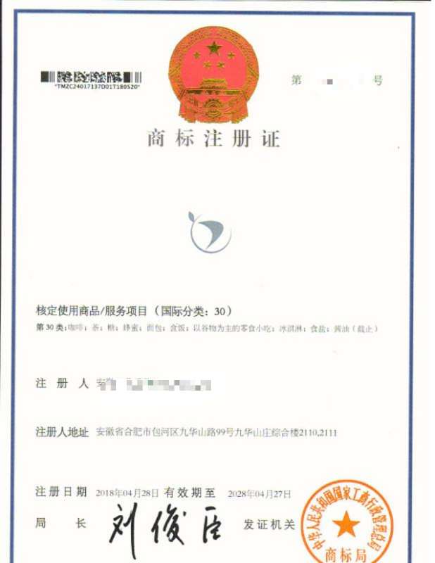 “图形”30类商标注册证下达